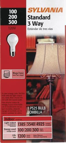 The most common applications for the Sylvania« high wattage 3 way Incandescent Light Bulbs are in old fashion lamps. These light bulbs come in a convenient 1 pack and have a CRI of 100. These multi-use bulbs are perfect for celling fans, decorative lights, or anywhere where you want the clear vibrant colors to show. Daylight removed the yellowish color of light from your room.