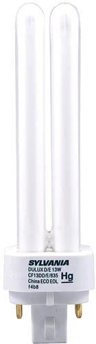 The most common applications for the Sylvania® 13-Watt T4X2 Pin Base Compact Fluorescent Light Bulb are surface mount and recessed fixtures. This light bulb has a CRI of 82.