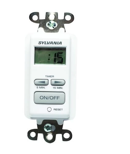 15-Minute Digital Auto Shut-Off Timer offers timed control of lights, fans, whirlpools, and more. You can use it as a regular on/off switch, or you can use the timer to turn off appliances after a set amount of time. The memory saver feature remembers your last setting for the next time you use the Timer, or in case of a power failure.