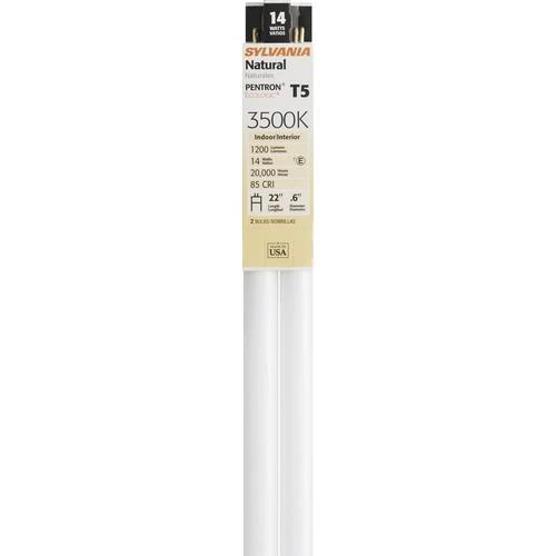 The most common applications for the Sylvania® 14-Watt T5 Natural Fluorescent Light Bulbs are fluorescent fixtures. These light bulbs come in a convenient pack of two and have a CRI of 85.