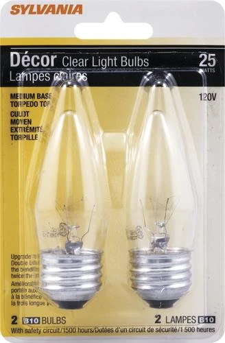 The most common applications for the Sylvania 25-Watt B10 Incandescent Light Bulbs are general use locations. These light bulbs come in a convenient 2-pack and have a CRI of 100.