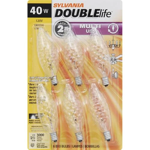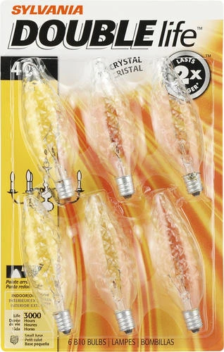 The most common applications for the Sylvania® 40-Watt B10 Incandescent Light Bulbs are in general use locations. These light bulbs come in a convenient six pack and have a CRI of 100. These multi-use bulbs are perfect for celling fans, decorative lights, or anywhere where higher vibration is a concern.