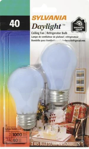 The most common applications for the Sylvania® 40-Watt A15 120V Daylight Fan Incandescent Light Bulb are in general-use locations. These light bulbs come in a convenient two pack.