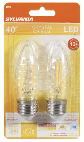The most common applications for the Sylvania crystal decor bulbs are decorative locations but can be used in most locations. The energy-saving LED light bulb offers a true substitute for incandescent lamps. Producing a similar lumen output and distribution patterns, the LED lamp provides up to 85 percent energy savings over traditional incandescent lamps.