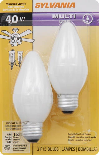The most common applications for the Sylvania® 40-Watt F15 White Incandescent Light Bulbs are in general-use locations. These light bulbs come in a convenient two pack and have a CRI of 100. These multi-use bulbs are perfect for celling fans, decorative lights, or anywhere where higher vibration is a concern.