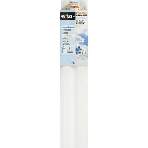 The most common applications for the Sylvania® 32-Watt T8 Sky White Fluorescent Light Bulbs are fluorescent fixtures. These light bulbs come in a convenient pack of two and have a CRI of 88.