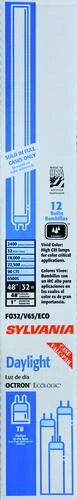 Sylvania 48″ FO32 T8 6500k Daylight is designed for use in linear fixtures. These are available by the full case or sold in the stores as individual bulbs