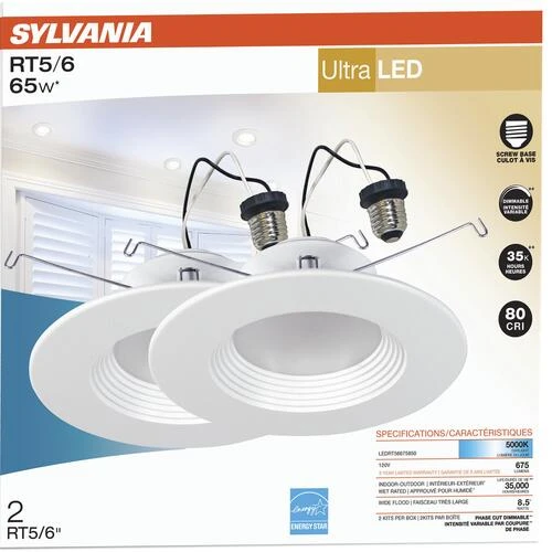 The SYLVANIA® Ultra LED Recessed Retrofit Downlight is screw based with a baffle reflector ideal for retrofit applications in residential, healthcare, hospitality, office, and retail buildings. There is no warm-up time, and is instantly on with full light output and consistent lamp-to-lamp color.