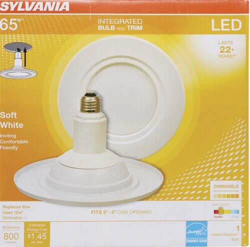 The SYLVANIA® ULTRA Integrated Bulb and Trim is an energy-efficient LED replacement for incandescent reflector lamps with integrated trim that updates the look of recessed lighting in one single solution. This easily installed lamp delivers energy savings up to 77 percent and is available in a warm 2700-kelvin color temperature.