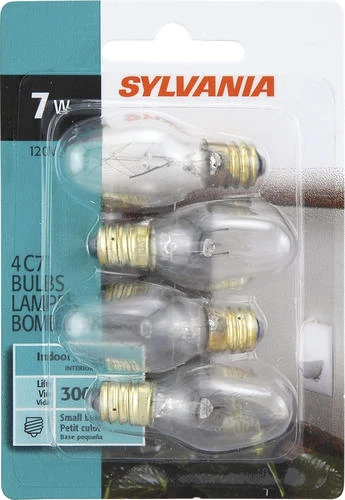 The most common applications for the Sylvania® 7-Watt C7 Incandescent Light Bulbs are in night lights. These light bulbs come in a convenient four pack and have a CRI of 100.