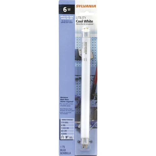 The most common applications for the Sylvania® 6-Watt T5 Cool White Fluorescent Light Bulb are fluorescent fixtures. This light bulb has a CRI of 60.