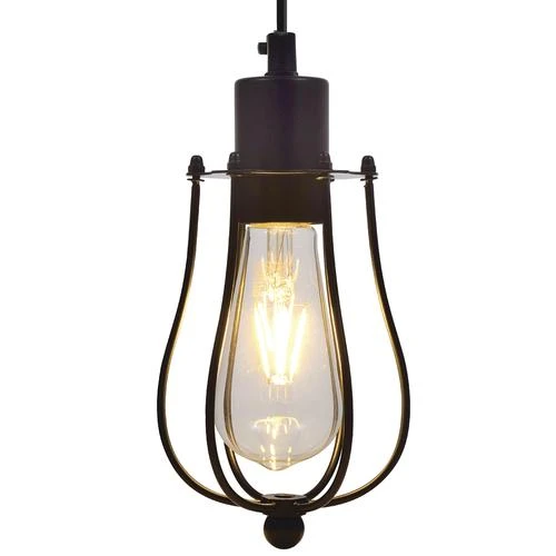 Sylvania Black Cage Pendent with a ST19 Light Bulb. This light has a 15′ cord and plug for easy installation.