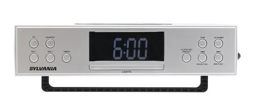 Jam out with this Bluetooth® Under-Cabinet Clock Radio from Sylvania. Pair your smart devices over Bluetooth® to create your own radio station or listen to FM radio anywhere you like! This radio also features a digital clock, USB charging ports, and full-range speakers.
