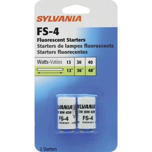 The most common applications for the Sylvania FS-4 Fluorescent Starters are fluorescent fixtures. These starters come in a convenient 2-pack.