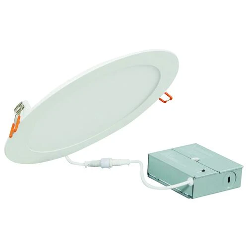 The SYLVANIA® Value LED Color Selectable Slim Microdisk is a slim profile LED downlight kit with remote driver that operates at 120 VAC. The 1/2-inch height allows for installation directly under joists in new and remodel construction.